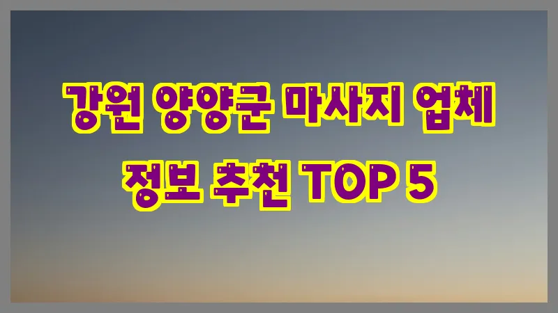 강원 양양군 마사지 업체 정보 추천 TOP 5