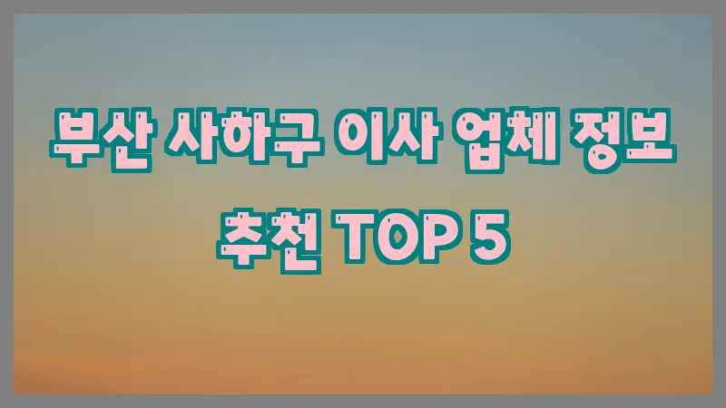 부산 사하구 이사 업체 정보 추천 TOP 5